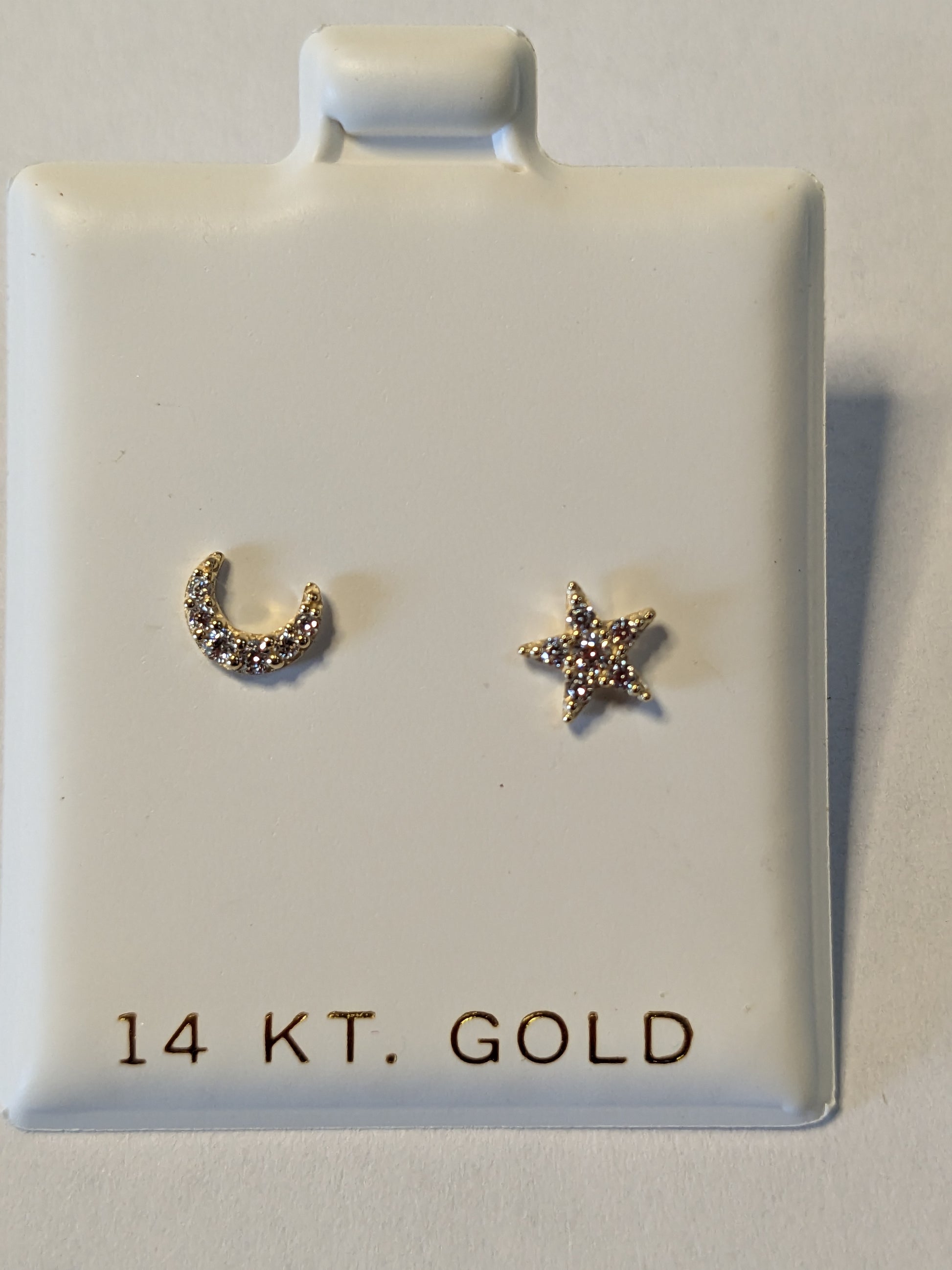 14 KT Children's Moon and Stars CZ set screw back Earrings