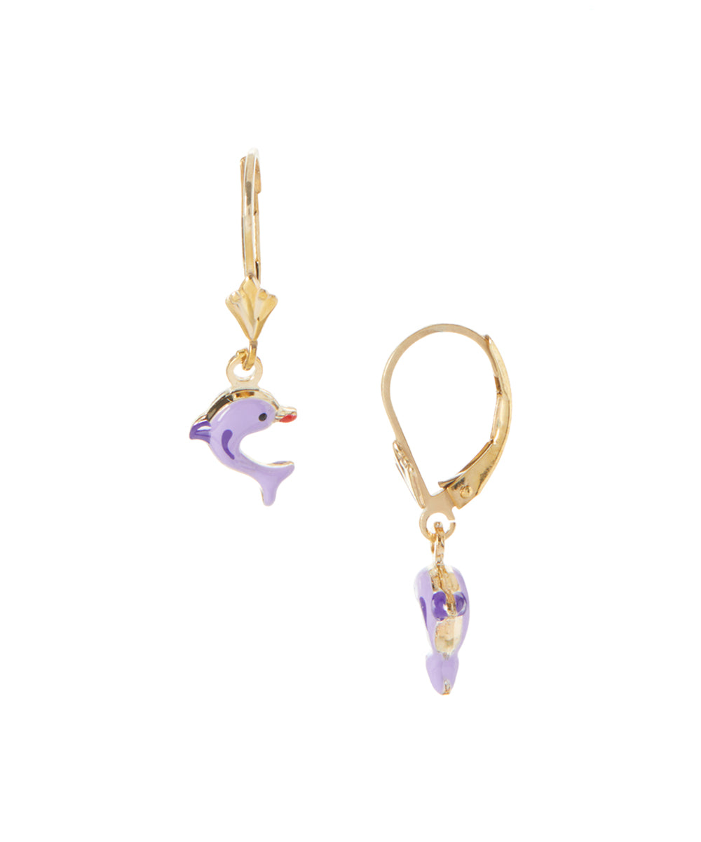 14 KT Gold Plated Silver Children's dolphin dangle earrings