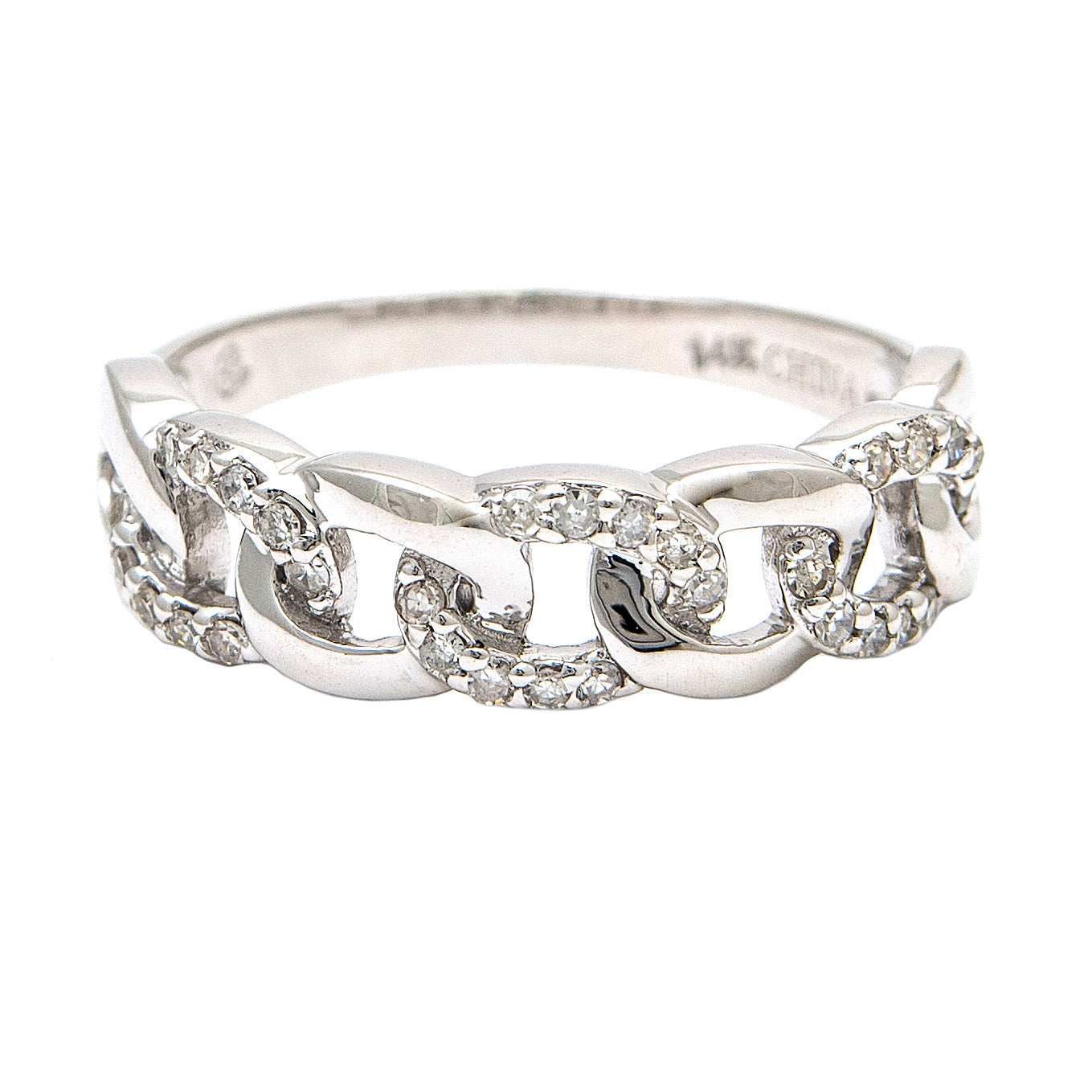 The 14 KT curb link ring with diamonds is smooth and urban and fits comfortably on the finger. There are two versions one with .15 ct. another with .20ct diamonds.