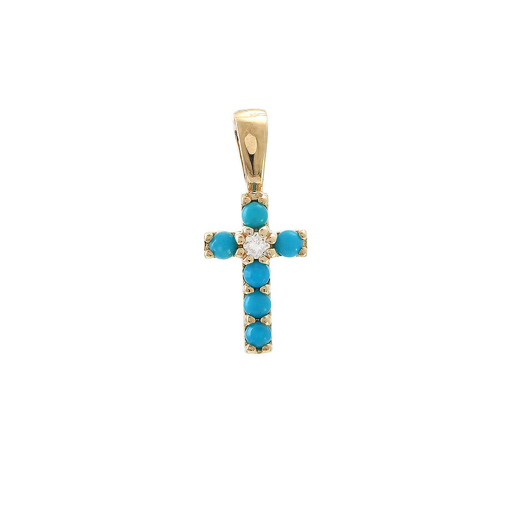 14 KT Teen Turquoise and diamond cross Pendant with 16 inch chain