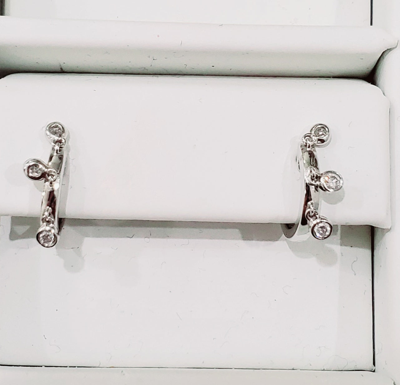 The 14KT Charms + diamond huggie triple bezel earrings feature genuine diamonds totaling .20pts and measure 11mm, making them a perfect fit for children ages 3 and up. These earrings are not only stunning additions to mini jewel collections, but also versatile enough to be worn with everyday looks. With a secure click closure, they are both stylish and safe to wear, even in water. Expertly crafted in Hong Kong.