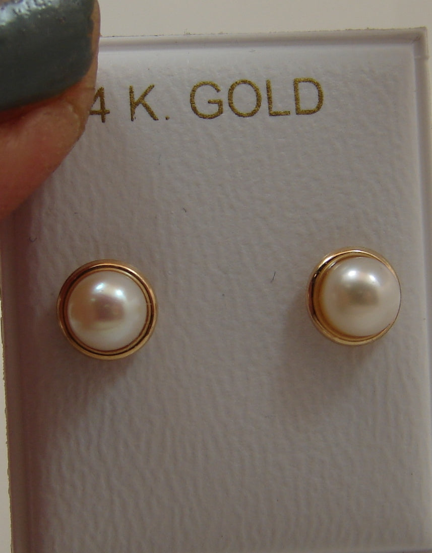 14 KT Children's deluxe trim pearl earrings 5mm.