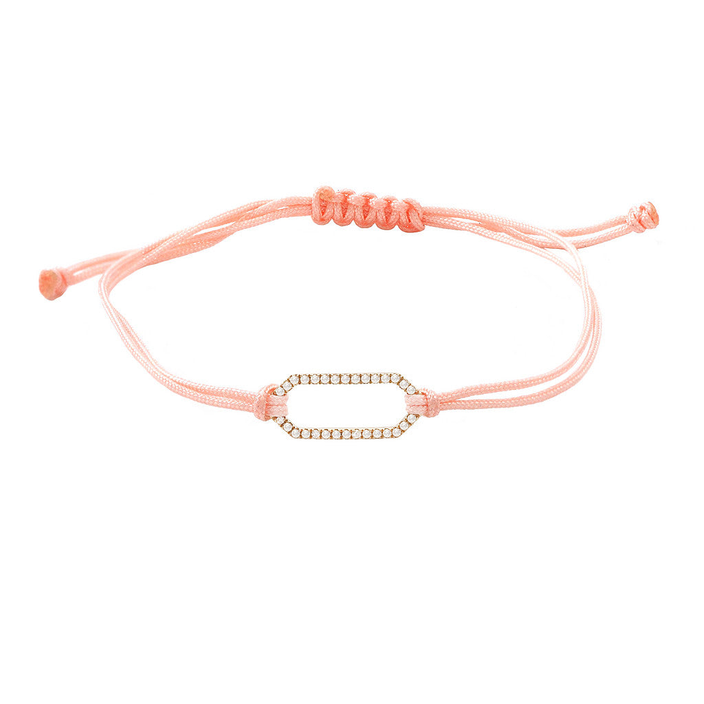 Pink cord 14 KT gold Diamond Paperclip bracelet.