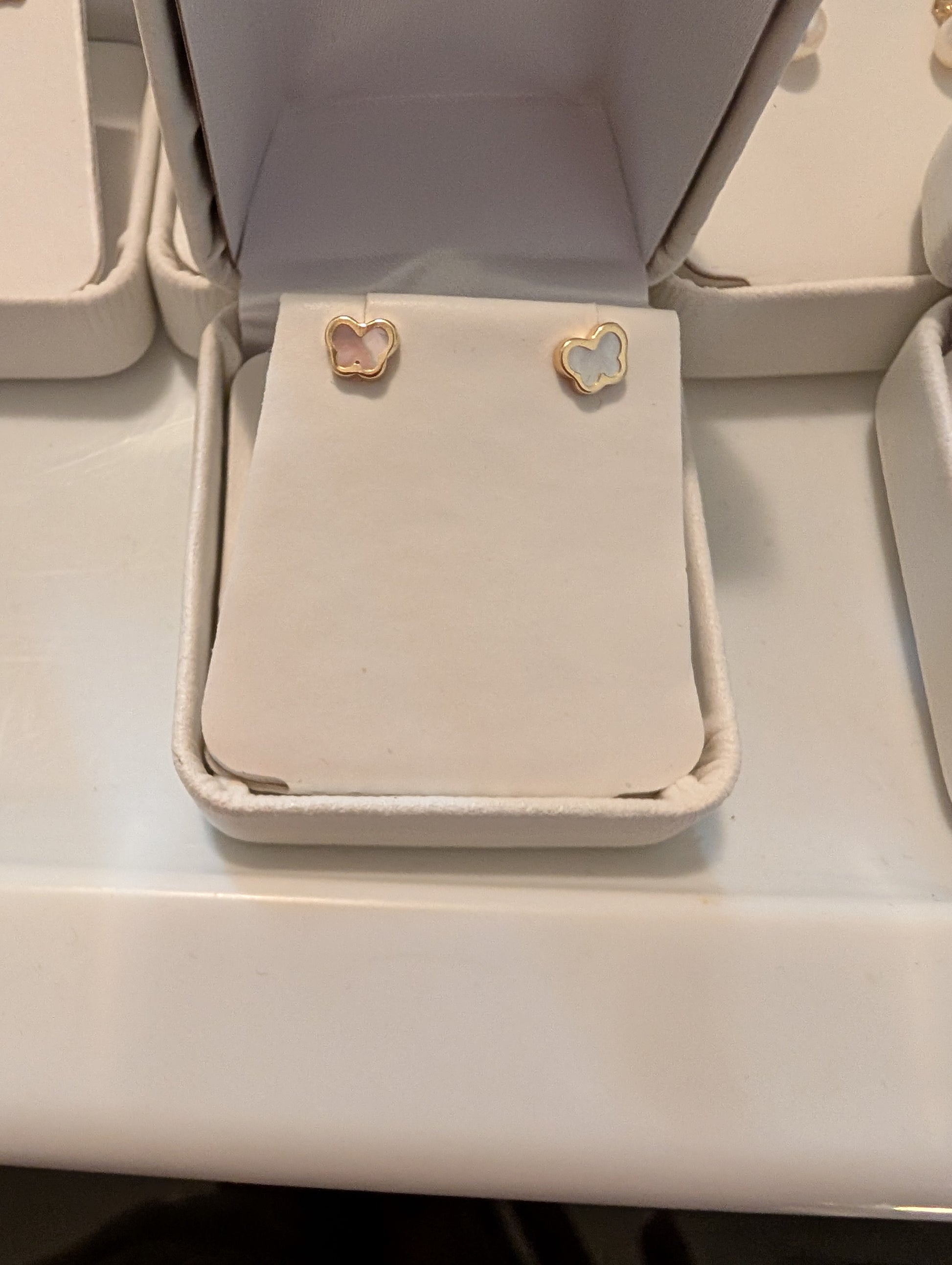 14 KT Gold Mother of Pearl Butterfly Screw Back Earrings