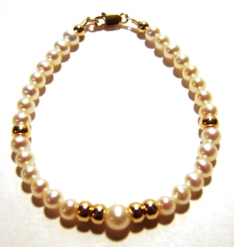 14KT Designed in 2000 our original Princess Bracelet design, combines pearl and 14KT gold to create a balanced display of metal and natural materials.