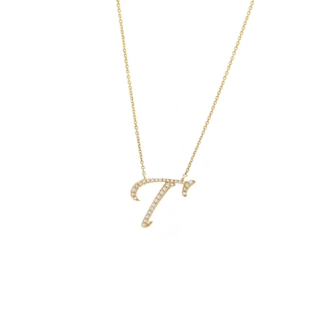 14 KT Micro pave Diamond Script Necklace