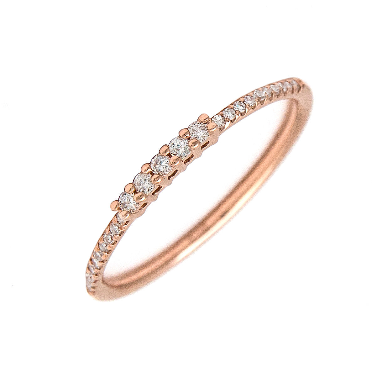 The 14 KT Thin ring with diamonds is smooth and organic and fits comfortably on the finger. There are five pop up stones in the center.